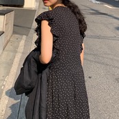 フリル付きのハーフスリーブが気になる二の腕をカバーしてくれます^^