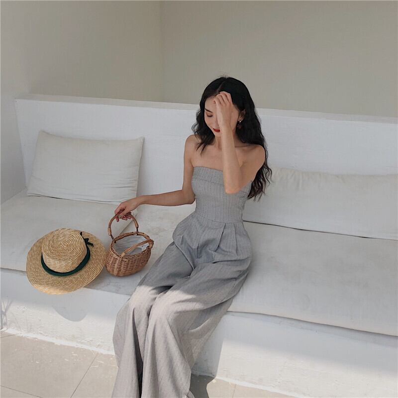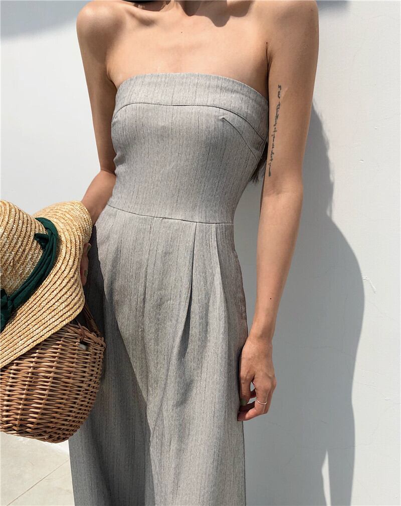 チューブトップジャンプスーツ ハイウエスト ジャンプスーツ チューブトップ ワイドレッグパンツ 薄手 夏 リゾート バケーション a3052