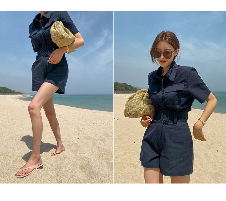 【セットアップ】スーツカラートップス+ショートパンツ ツーピース ショートトップス 夏. パンツ ハイウエスト 2カラー a3073
