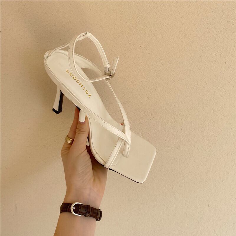 ワンワードバックルサンダルハイヒール オープントゥ ローマン シューズ ミュール サンダル ハイヒール ビーチサンダル アンクルストラップ 3カラー a3103