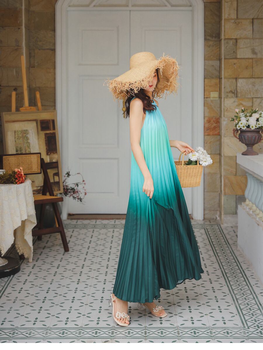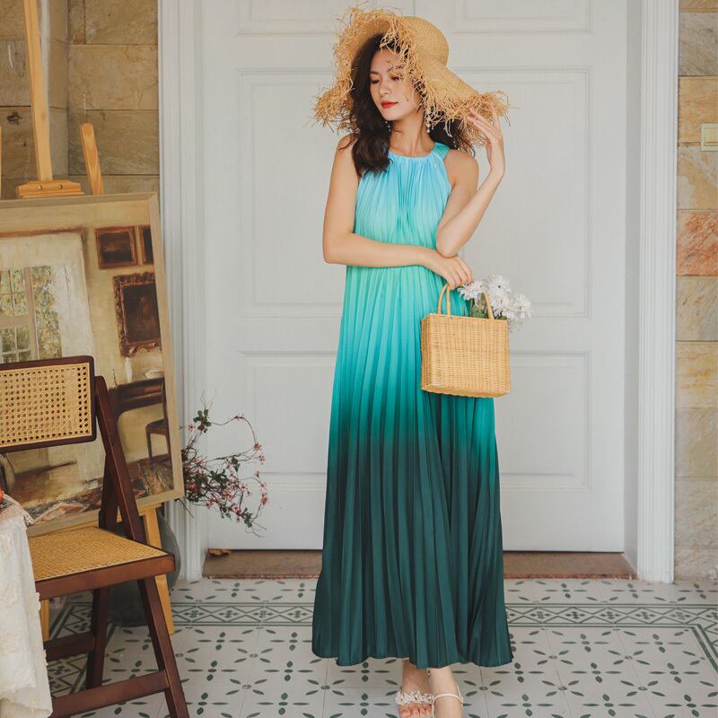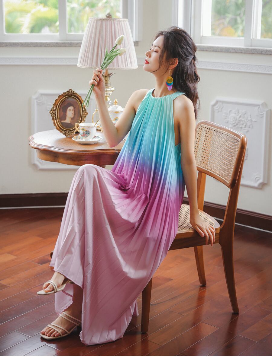 グラデーションビーチドレス ビーチワンピース サマーワンピ サマードレス グラデーション ワンピース ドレス フェアリー ノースリーブ ホルターネック. a3109