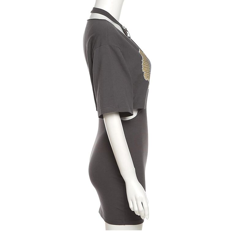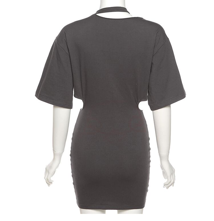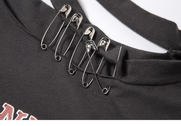 【日本未発売】ニッチデザインワンピース サイドオープン ホルターネック 安全ピン ミニワンピ ワンピース ドレス セクシー トレンド ストリート アメカジコーデ a3090