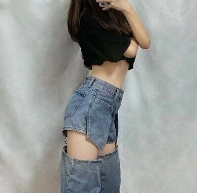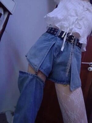 【日本未発売】ハイウエストデタッチャブルジーンズ ストレートジーンズ ルーズ ジーンズ デニム ストリート アメカジコーデ デザインニッチ a3128