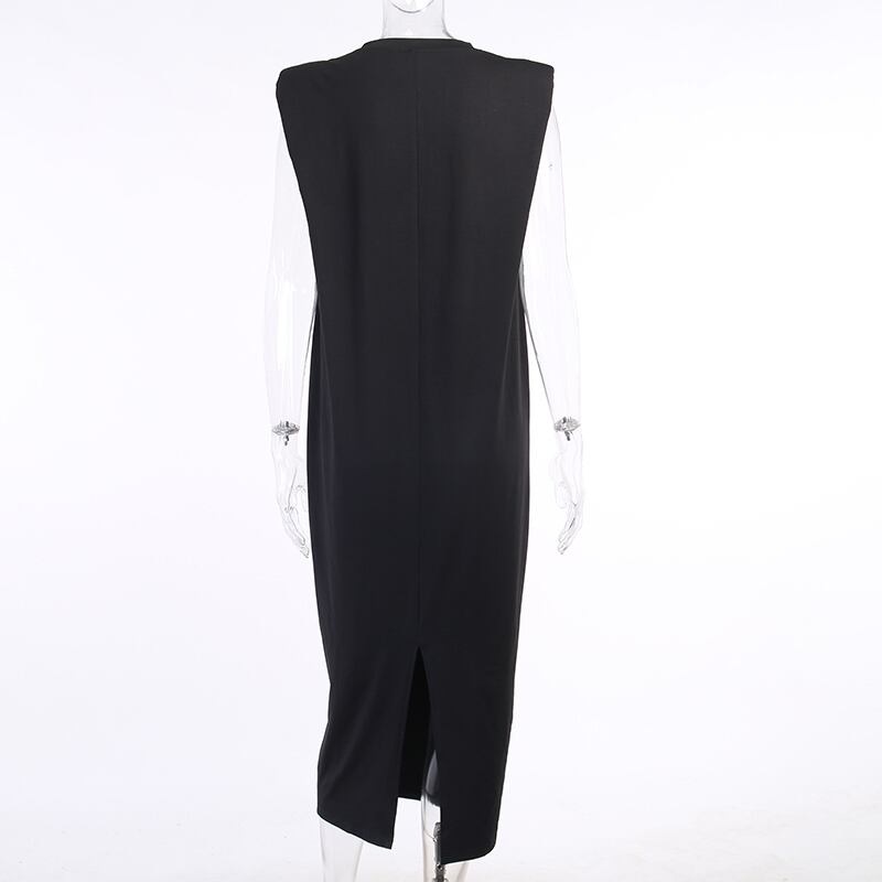 ノースリーブ無地ワンピース ショルダーパッド付き シンプル ルーズ ロングスカート ワンピース ドレス サマーワンピ 夏 ストリート アメカジ 薄手 2カラー a3130