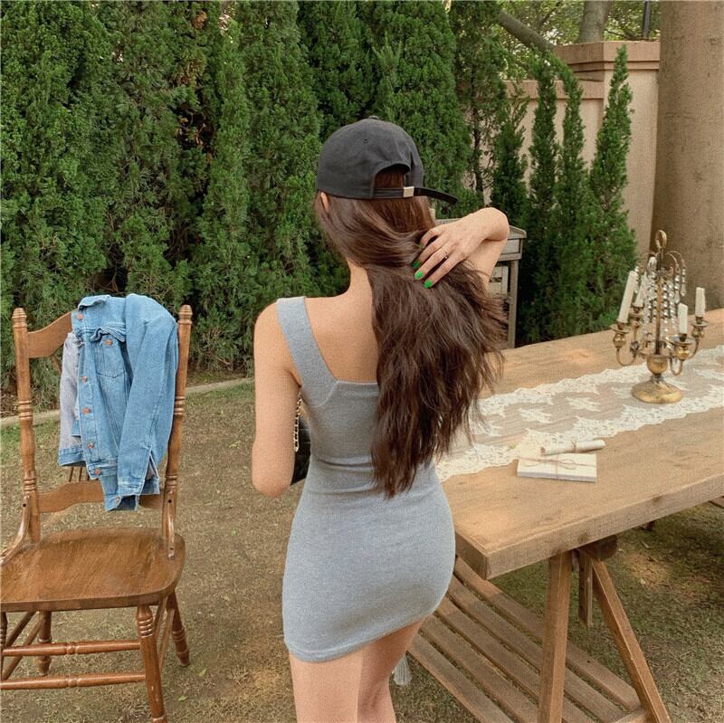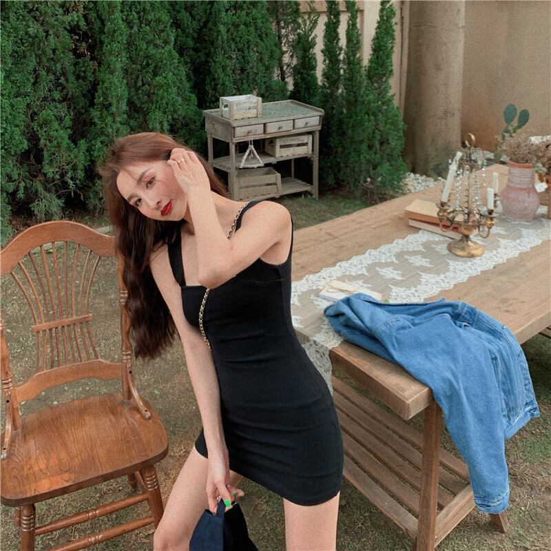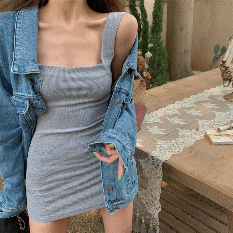 無地タイトワンピース ミニワンピ ワンピース タイトドレス ショートスカート スリム スリミング レトロ セクシー スクエアネック 夏 レディース 4カラー a3164