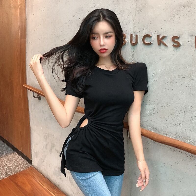 サイドシャーリング 半袖Tシャツ 無地 レディース プルオーバー 半袖 Tシャツ. トップス 韓国 オルチャン イレギュラー 夏 a3165