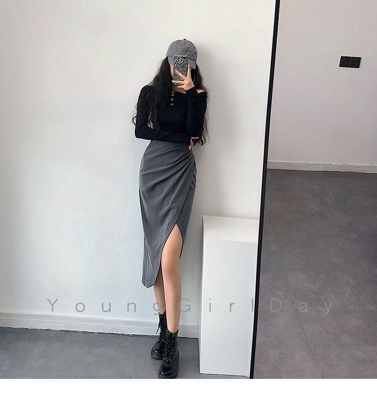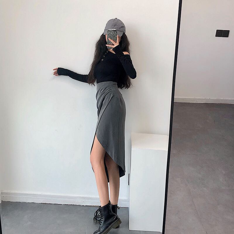 アシメントリースプリットスカート Aラインスカート ハイウエスト ミドルスカート アシメントリー スカート a3171