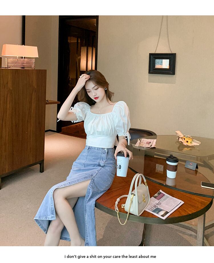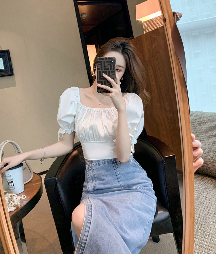 バックリボンブラウス パフスリーブ ブラウス トップス ショート丈 半袖ブラウス シャツ レディース 韓国 オルチャン かわいい デートコーデ a3172