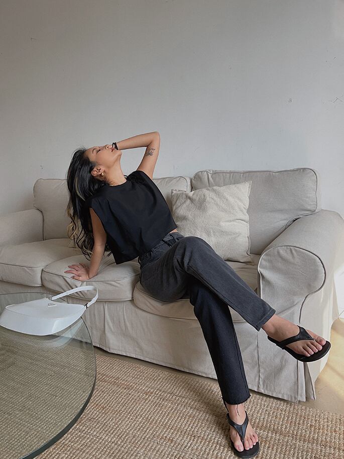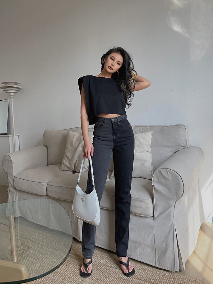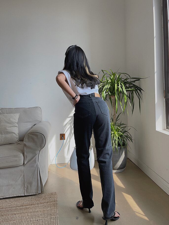 ブラック&ダークグレーの2色非対称ストレートジーンズ