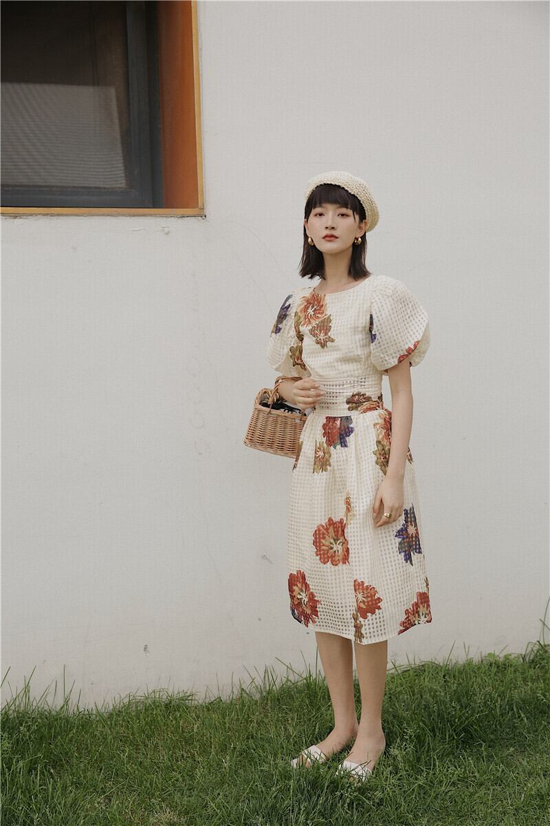 花柄ワンピース ランタンスリーブ エレガント 上品 レトロ パーティー ワンピース ドレス プリンセスドレス a3255
