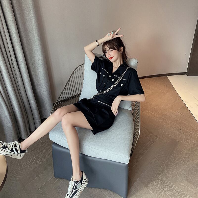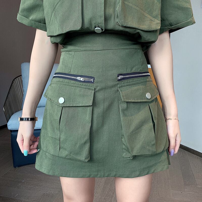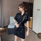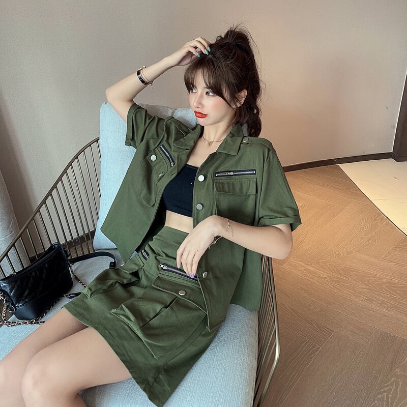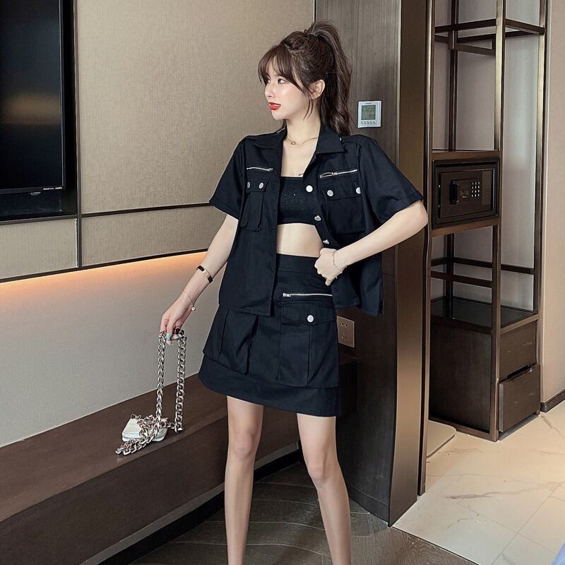 【セットアップ】半袖ジャケット+ショートスカート ツーピース スーツ ジャケット ハイウエスト 2カラー a3220