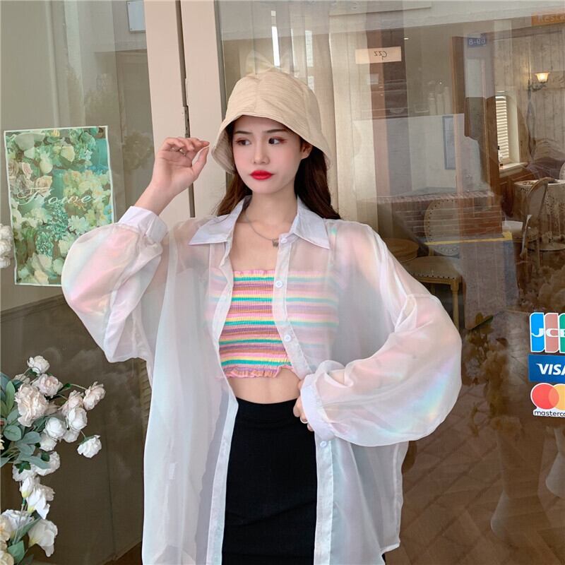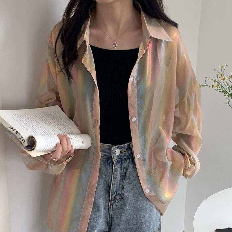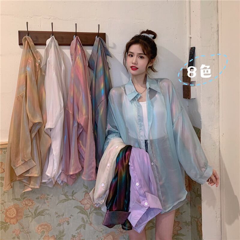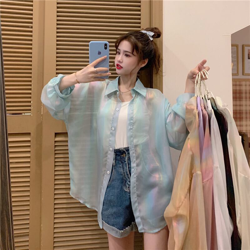 グラデーションシースルーシャツ 長袖シャツ シャツ スルーシャツ グラデーション 薄手 韓国 オルチャン かわいい 人気 8カラー a3308