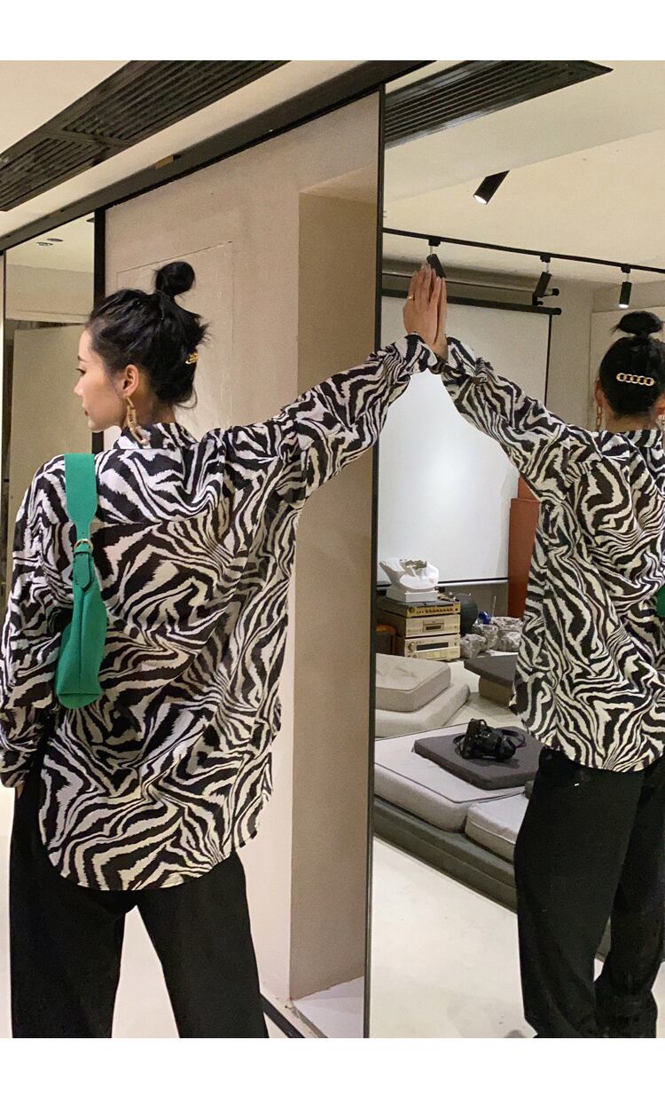 ゼブラシャツ 長袖シャツ 薄手 シャツ ルーズ ストリート プリントシャツ 日焼け止めシャツ. a3262