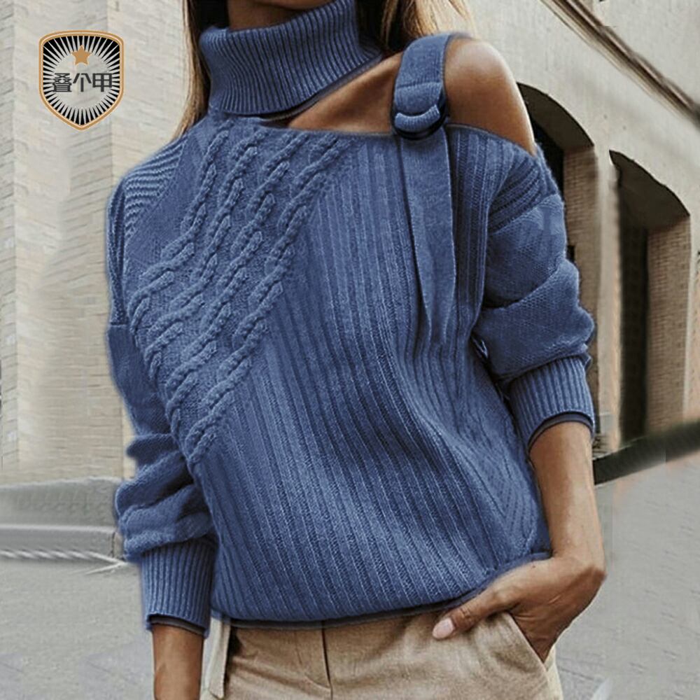 ヒョウ柄 パッチワーク タートルネック セーター オフショルダーニット トップス A1759