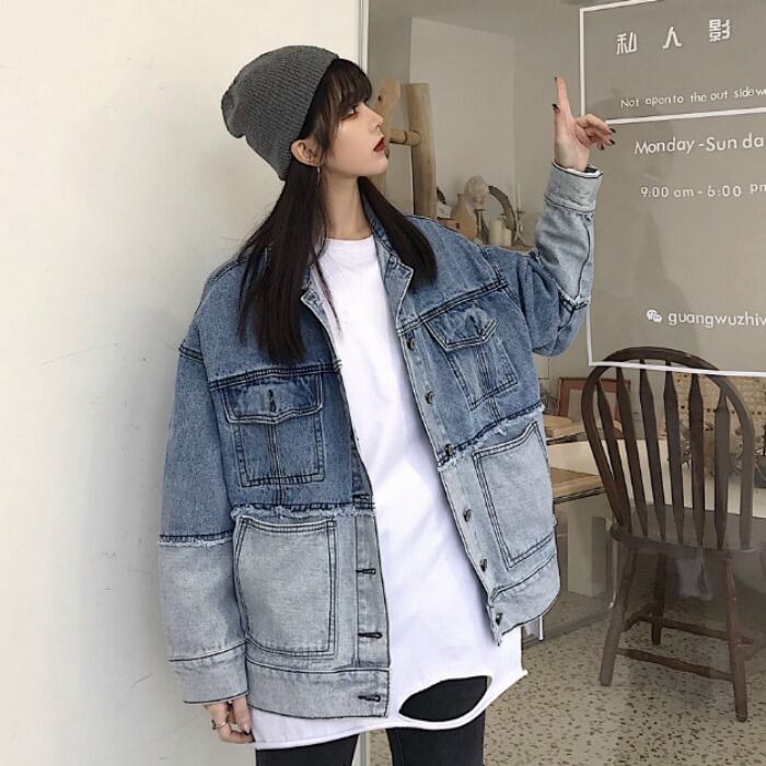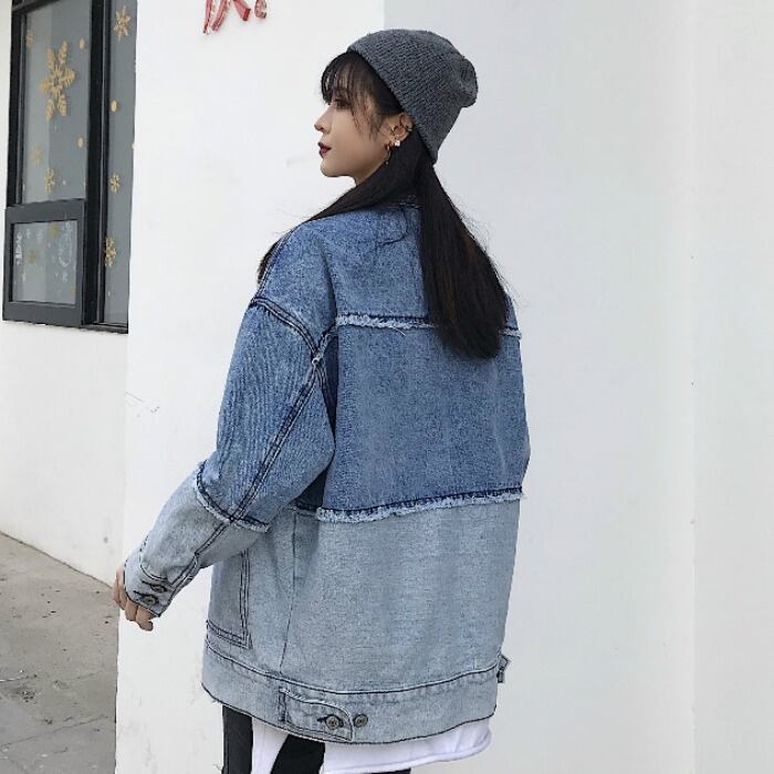 デニムジャケット ツートーンカラー デニム ジャケット アウター カジュアル ルーズ a3303