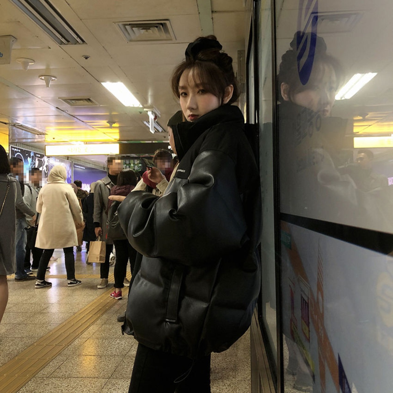 ブラック ダウンジャケット スタンドアップカラー ダウンコート ジャケット. アウター 韓国 a3318