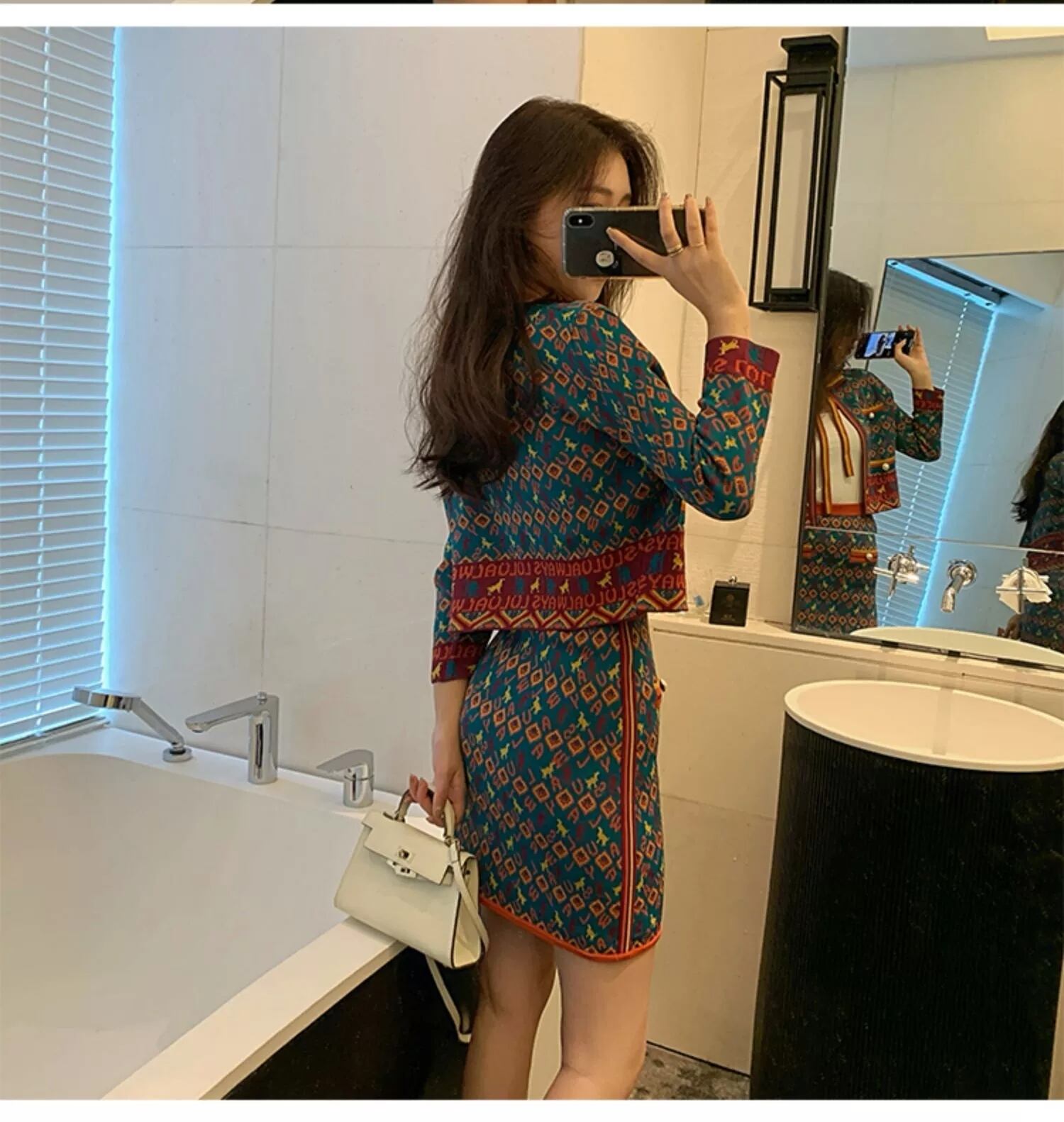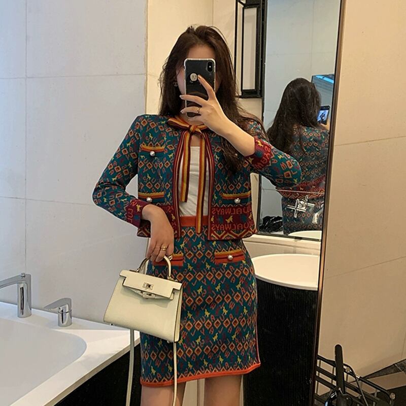 【セットアップ】ニットカーディガン+ニットスカート ツーピース カーディガン スカート a3332