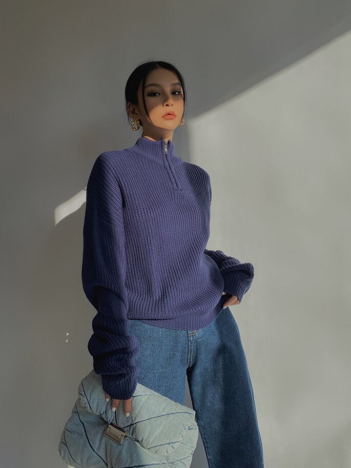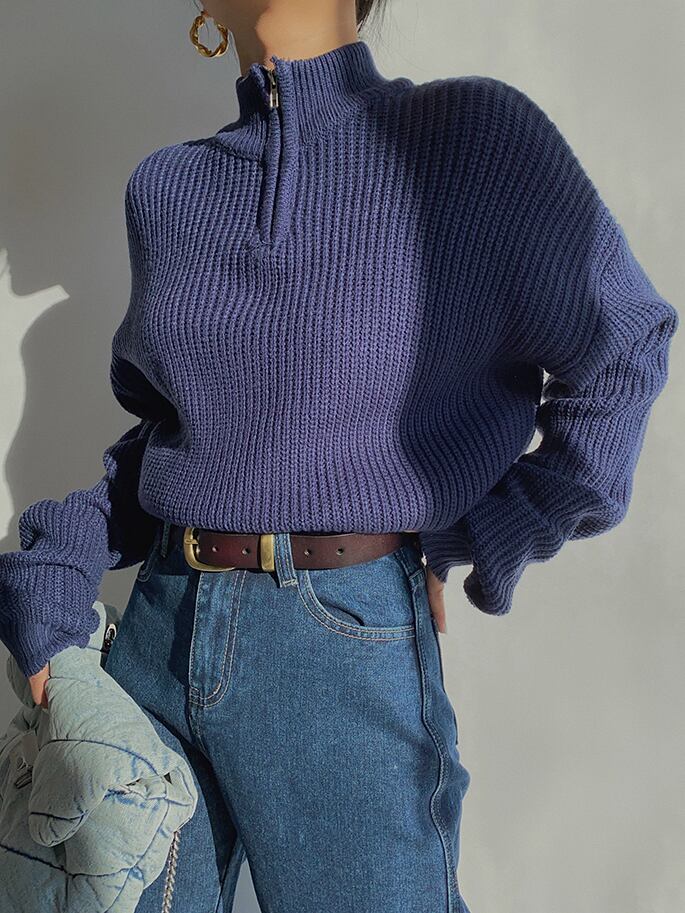 少しルーズなサイズ感のハーフジップセーター