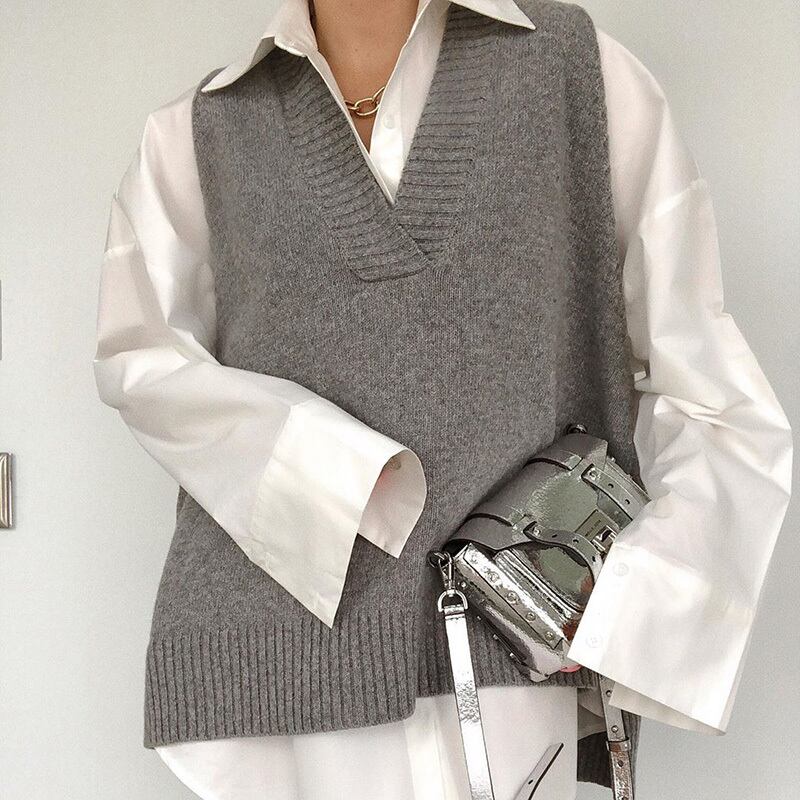 Vネックノースリーブニットベスト ノースリーブ ニット セーター ベスト シンプル 無地 ルーズ トップス a3357