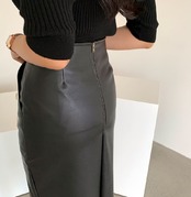 レザースカート PUレザースカート ミドル丈 ストレート スリット ハイウエスト スカート トレンド 秋冬. 韓国 a3407