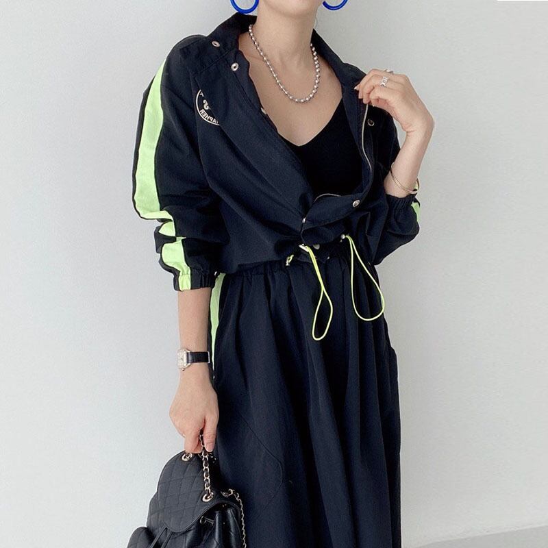 【セットアップ】ショートジャケット+Aラインスカート バイカラー ジャケット スカート スポーティー ツーピース 2カラー a3409