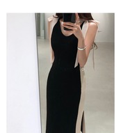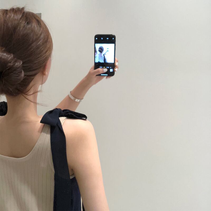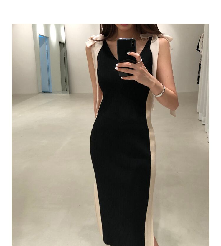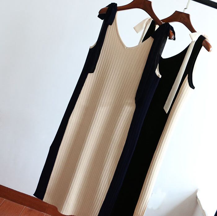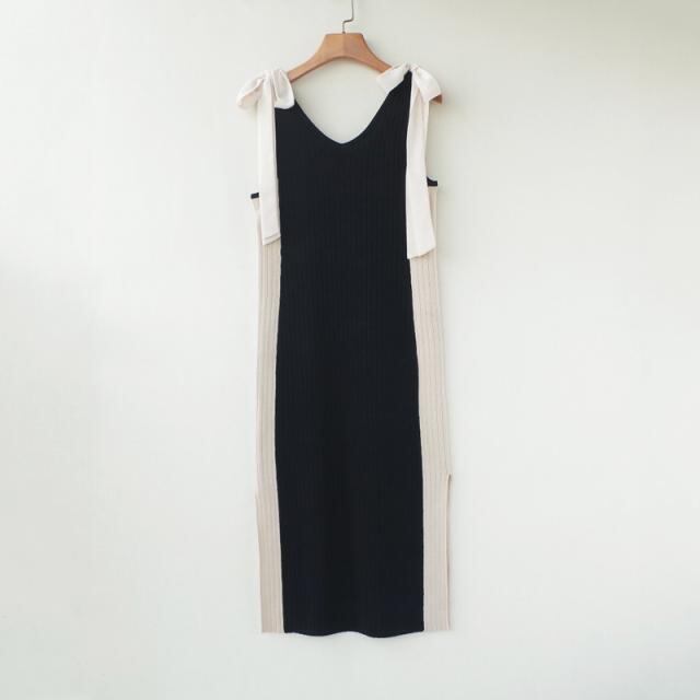 肩紐リボンニットワンピース ノースリーブワンピース ワンピース サマードレス ニットワンピ a3423