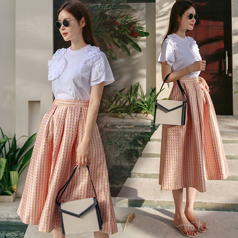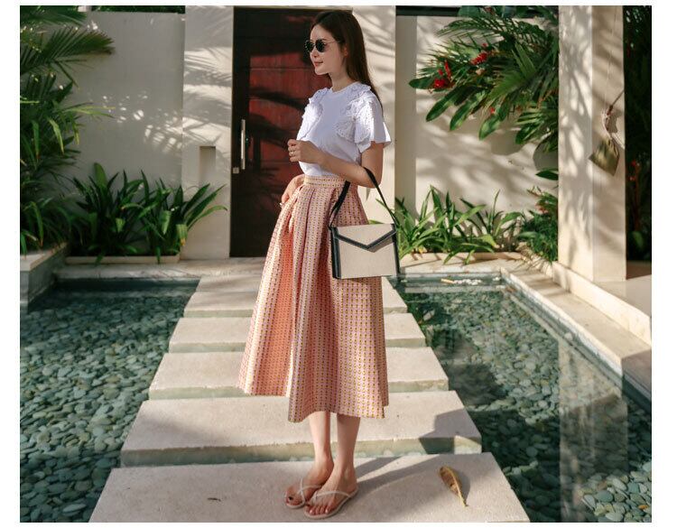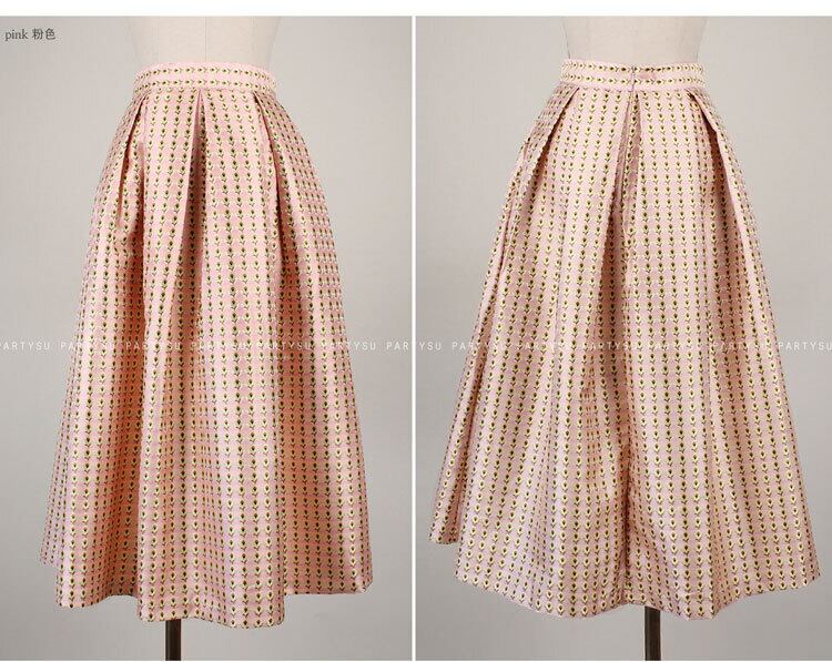Aラインスカート フレアスカート スカート ハイウエスト ミドル丈 刺繍 2カラー a3425