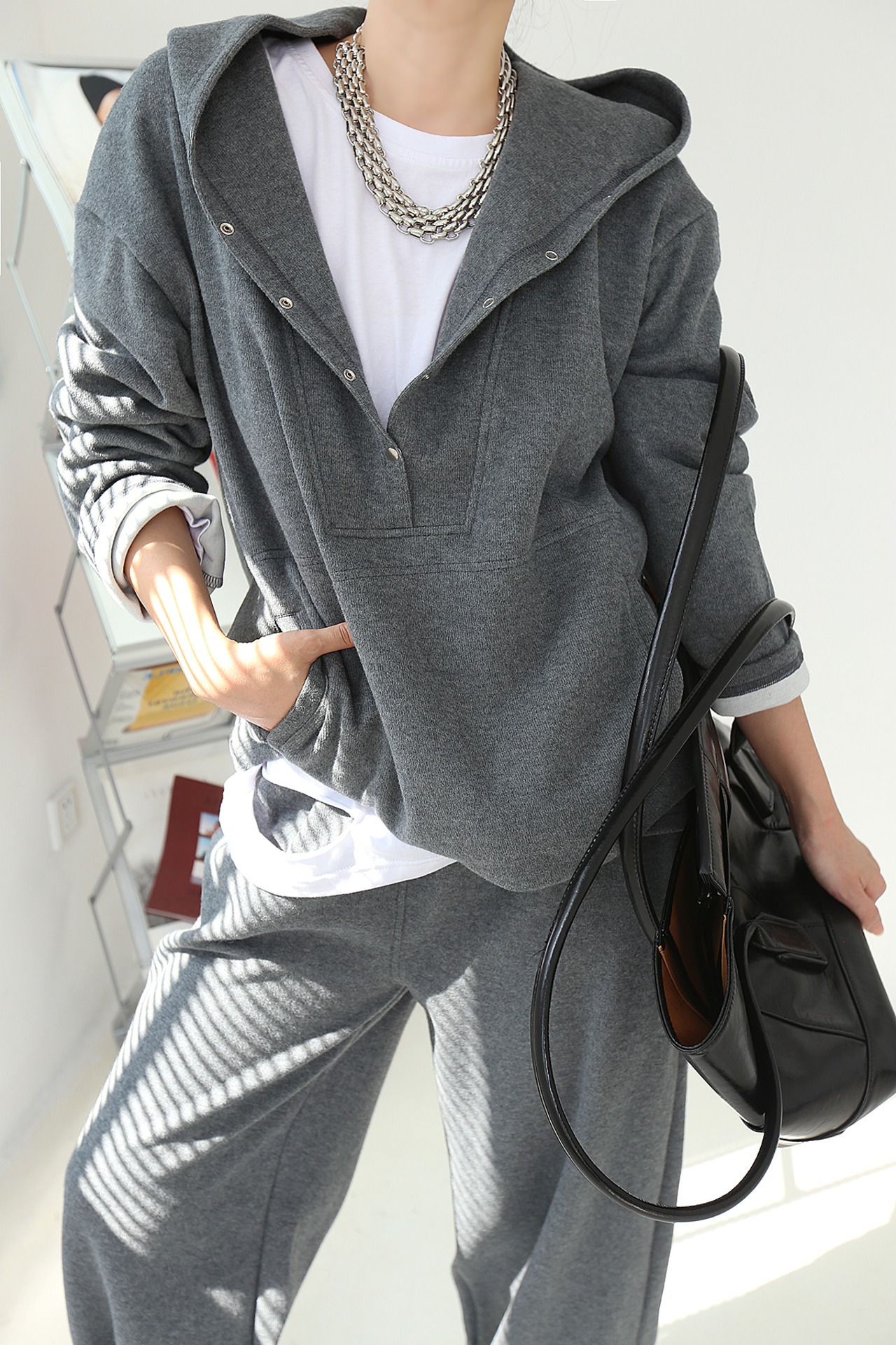 【セットアップ】フード付きセーター+ワイドレッグパンツ ツーピース スーツ スポーティー ルーズ シンプル. 3カラー a3435