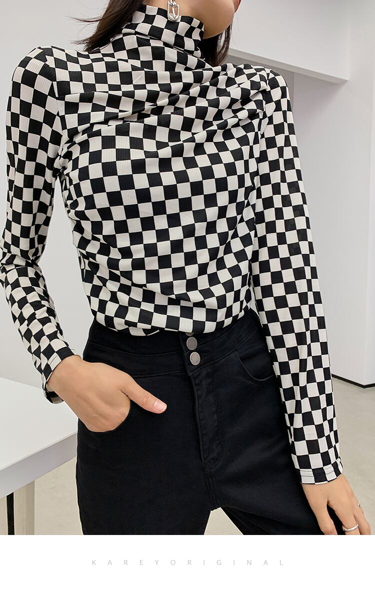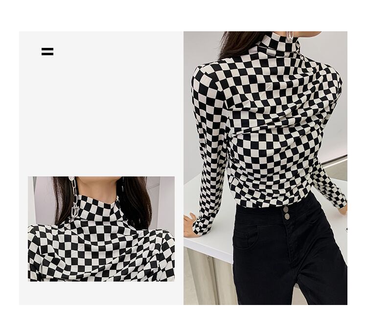 ハイネック長袖ボトミングシャツ レディース 秋冬 無地 トップス Tシャツ ストリート a3496