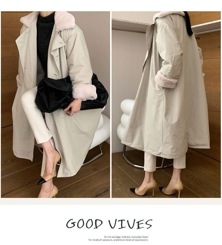 ネックファー トレンチコート パッド入り ジャケットレディース ジャケットプ ベルベット. コート アウター 冬 a3521