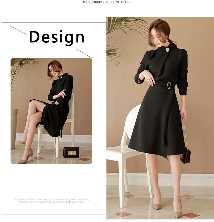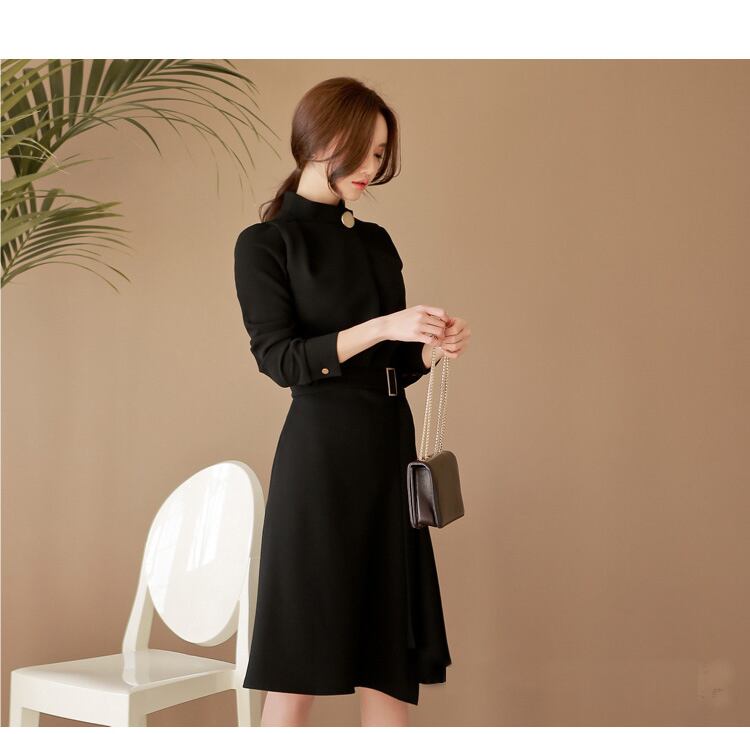 ワンピース 膝丈 ワンピ レディース キレイめ 長袖 ワンピース フォーマル ドレス 黒ワンピース 入学式 スーツワンピース パーティドレス a3525