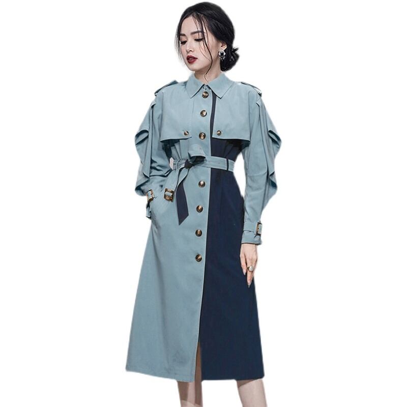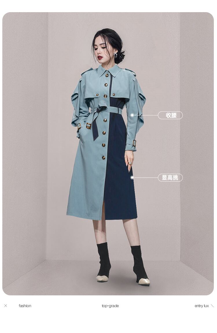 バイカラー トレンチコート ウエストタイ ミドル丈 ヨーロピアン ジャケット. コート アウター レディース ウインドブレーカー 2カラー a3526