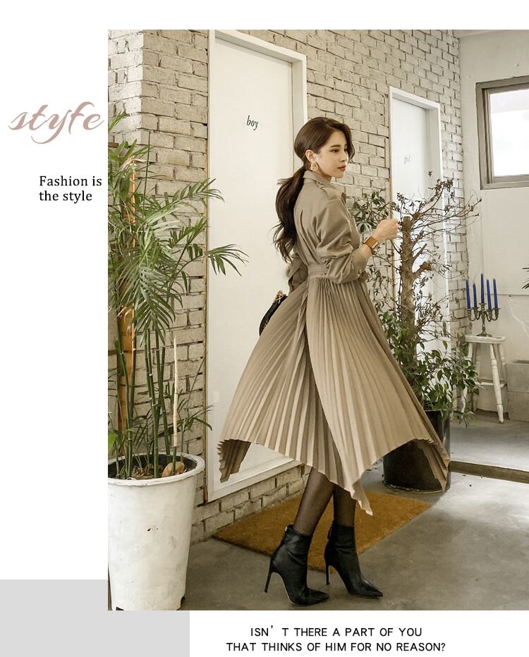 プリーツシャツワンピース シャツワンピース プリーツスカート レディース イレギュラー ミモレワンピース 長袖ワンピース a3447