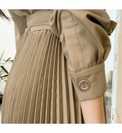 イレギュラなープリーツスカートがオシャレなシャツワンピース