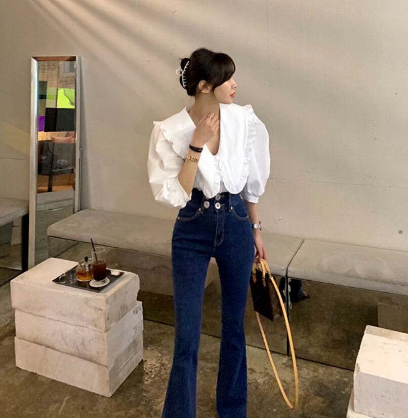 ストレッチブーツカットジーンズ ブーツカット ジーンズ デニム ハイウエスト ドレープ スリム a3449