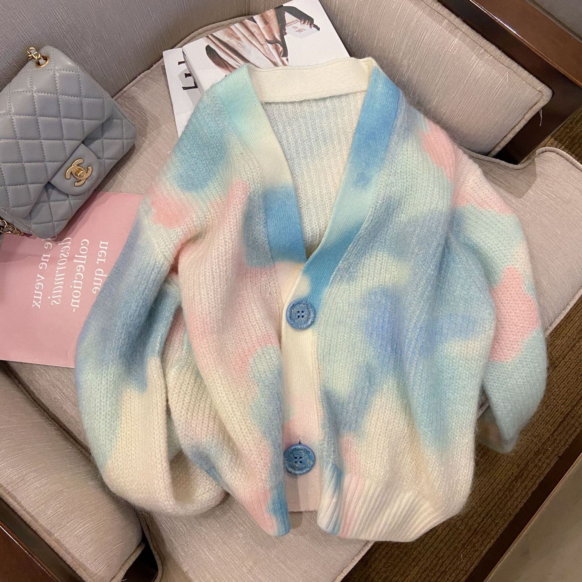 絞り染めグラデーションがオシャレなVネックカーディガン