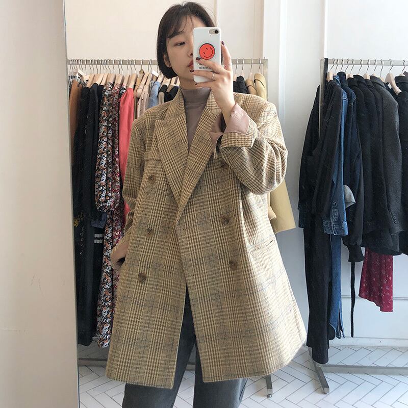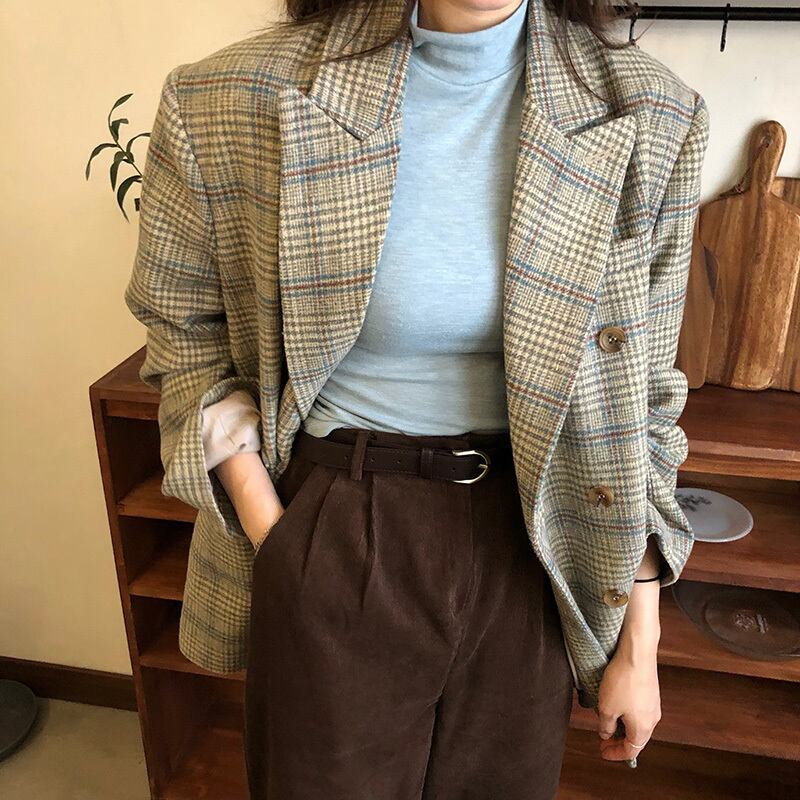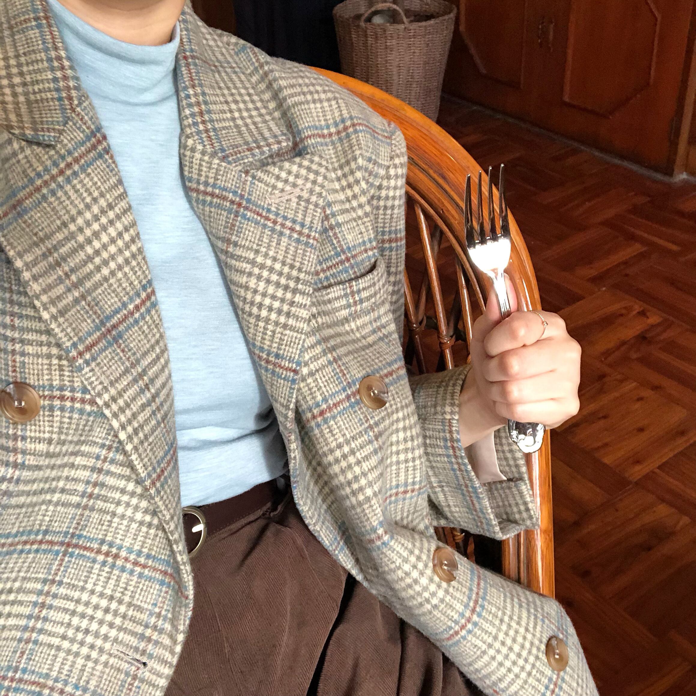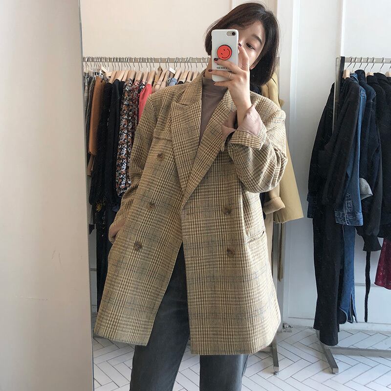チェック柄ジャケット ジャケット コート アウター スーツカラー ルーズ 長袖. ウールコート 韓国 シック 秋冬 2カラー a3485
