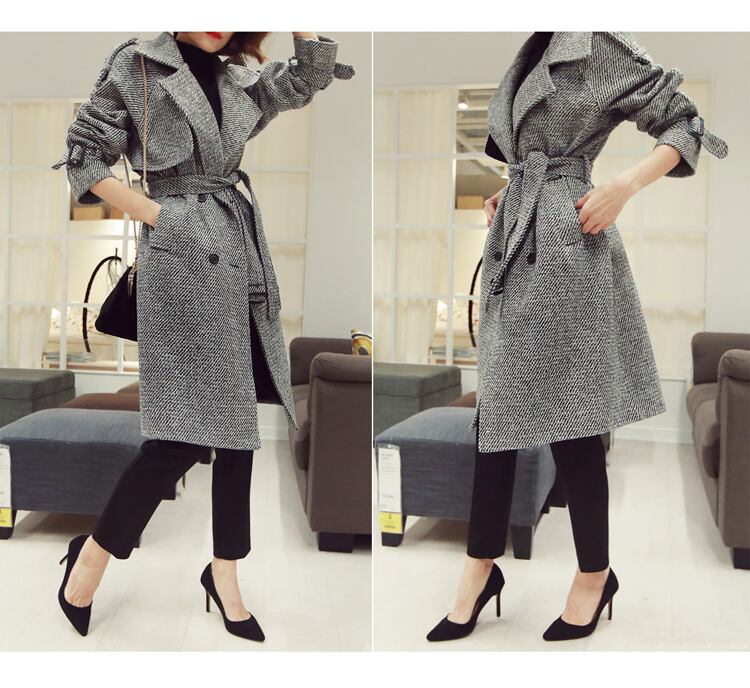 千鳥格子ウールコート コート ジャケット アウター ミドルコート レディース 秋冬 ウールコート ウエストベルト ダブルブレスト a3486