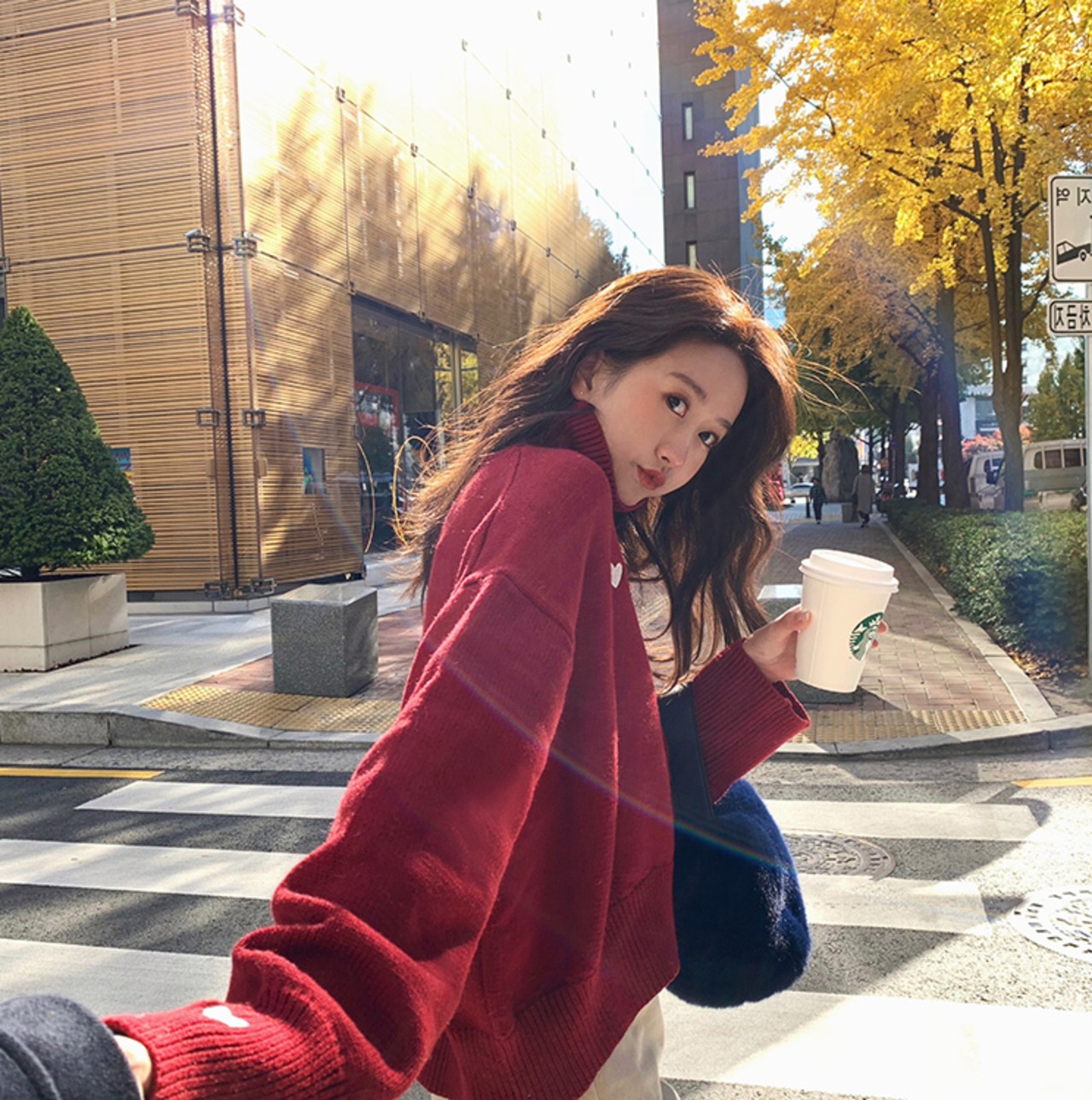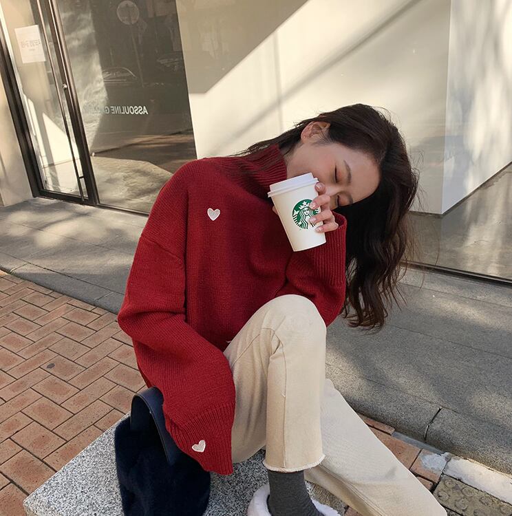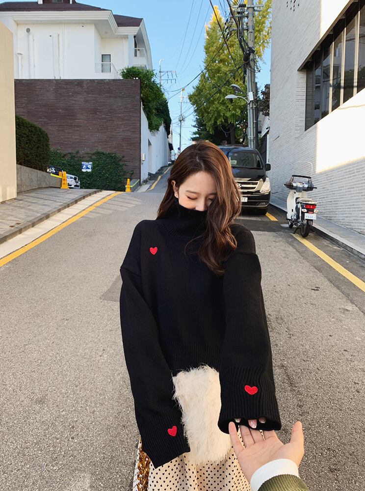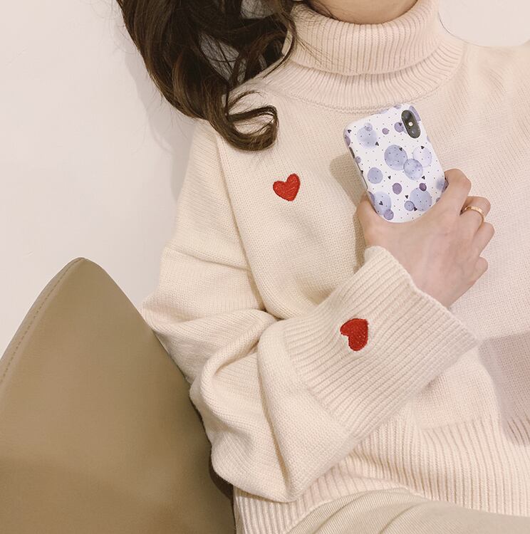 ハート刺繡セーター ニット セーター 長袖 秋冬 タートルネック プルオーバー 刺繡セーター 3カラー a3494