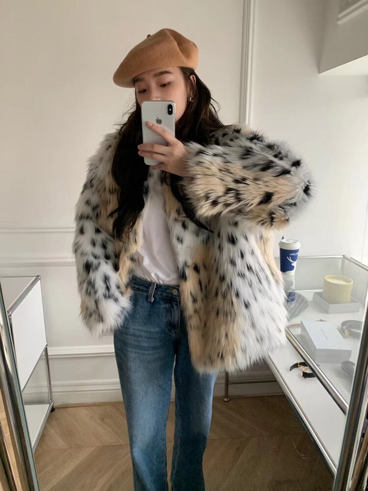 レオパード柄 ファーコート 毛皮 コート ジャケット. アウター 冬 ヒョウ柄. フェイクファー 2カラー a3541
