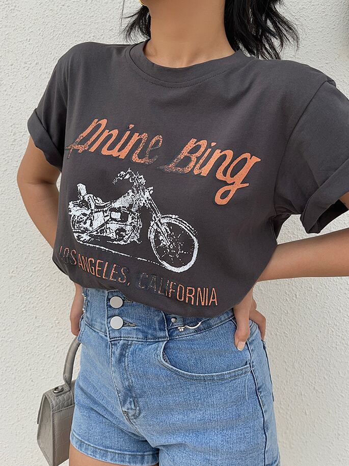 バイクプリントがオシャレな半袖Tシャツ