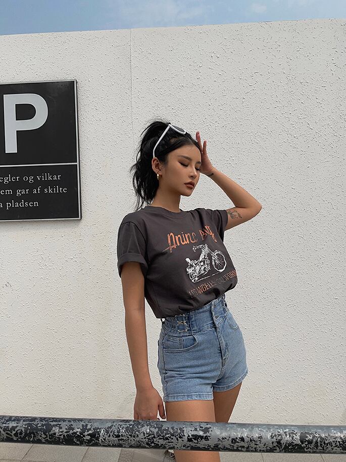 プリント半袖Tシャツ 半袖Tシャツ 半袖 Tシャツ カジュアル. ストリート ラウンドネック パンク アメカジ a3492