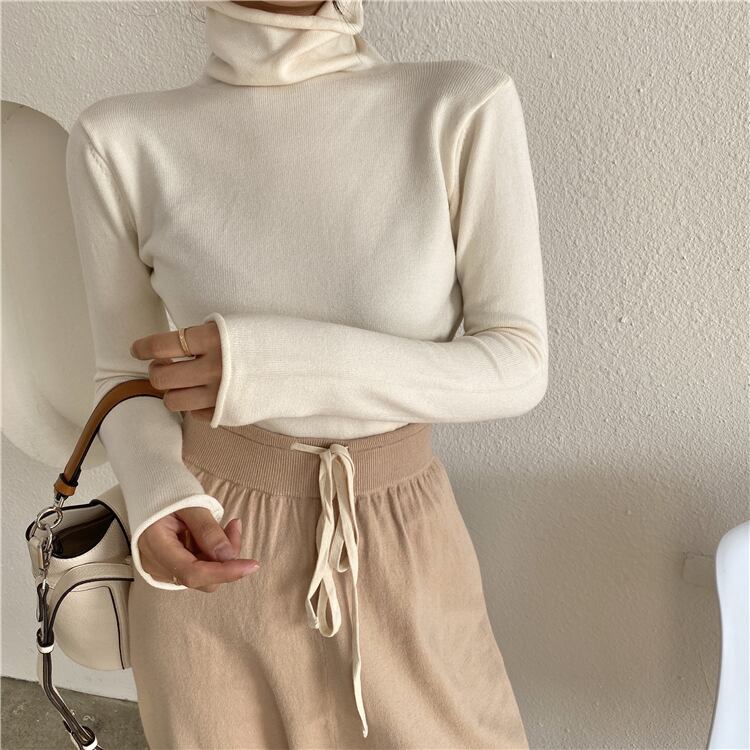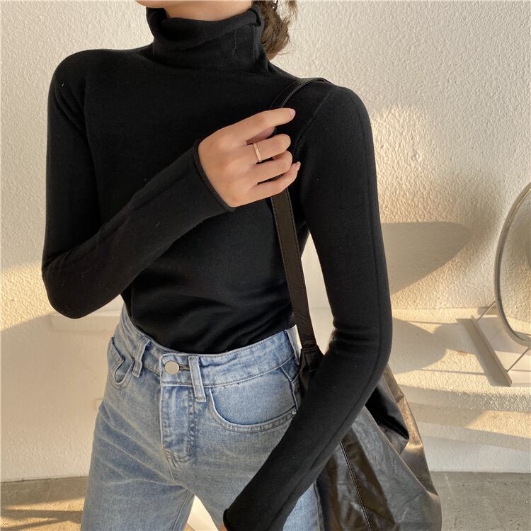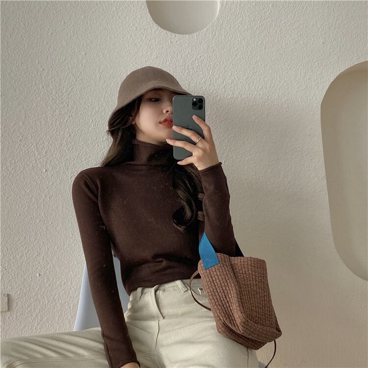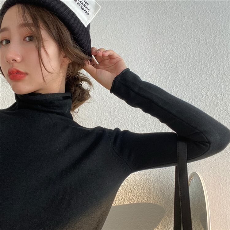 ハイネックボトミングシャツ スリム ストレッチ プルオーバー セーター 韓国 レトロ 長袖 無地 a3545