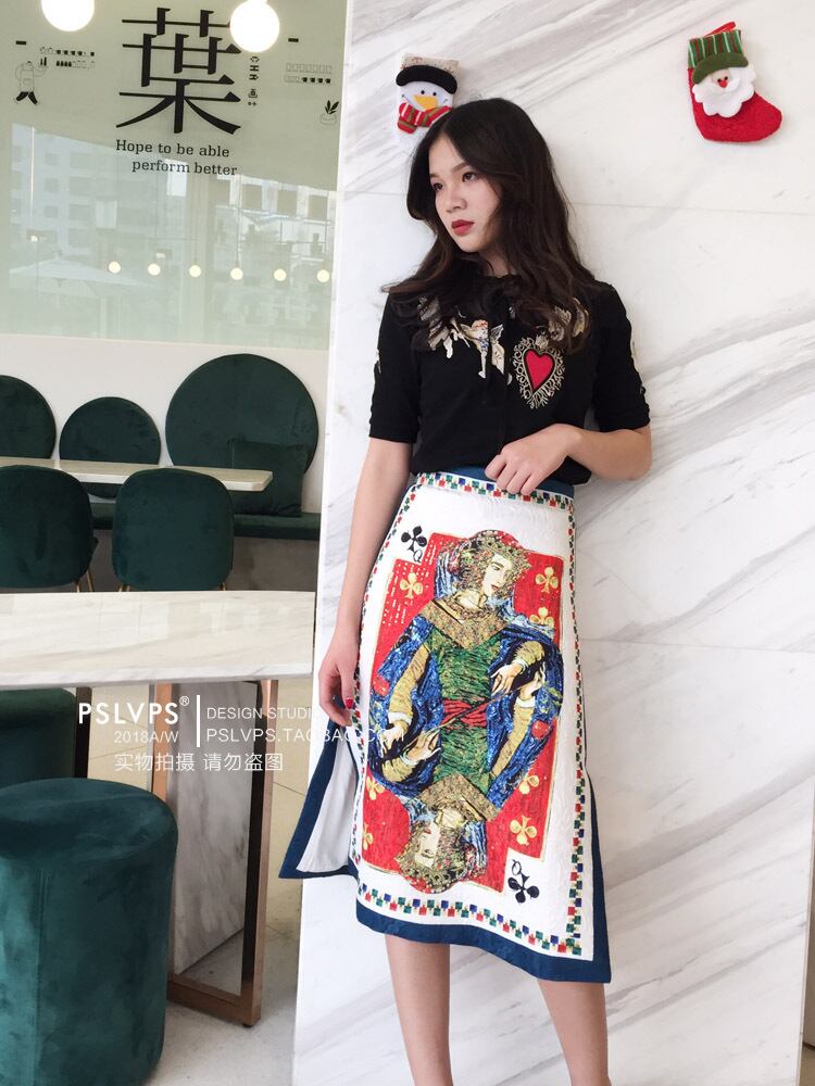 刺繍トランプスカート ミディアムスカート スカート ハイウエスト サイドスリット スパンコール 刺繍 a3575