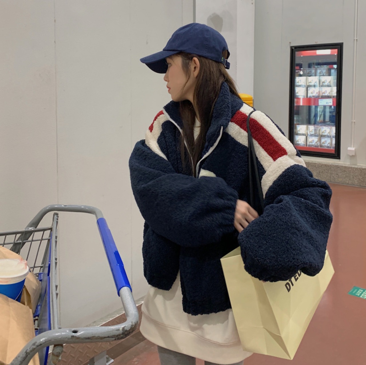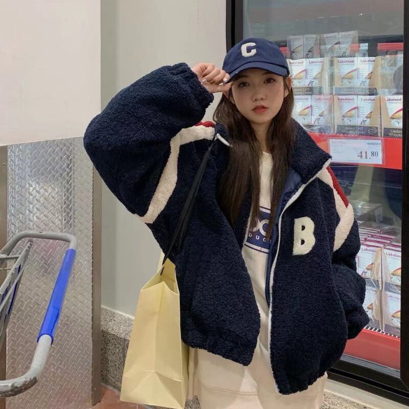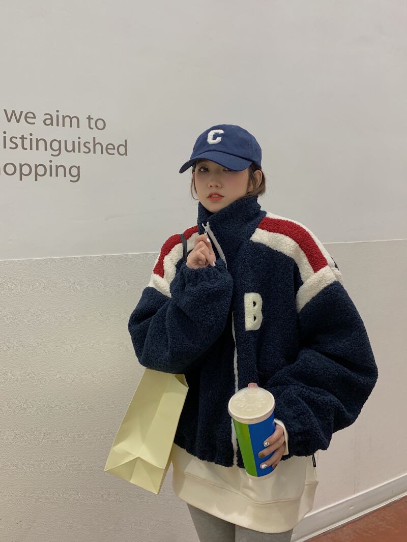 B刺繍ボアジャケット もこもこアウター ゆったり オーバーサイズ あったか可愛い ボアジャケット ボアコート ジャケット コート アウター 冬 レディース スタンドカラー 韓国 a3582