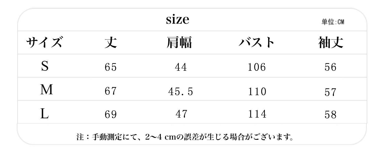 注:手動測定にて、2〜4 cmの誤差が生じる場合がございます。