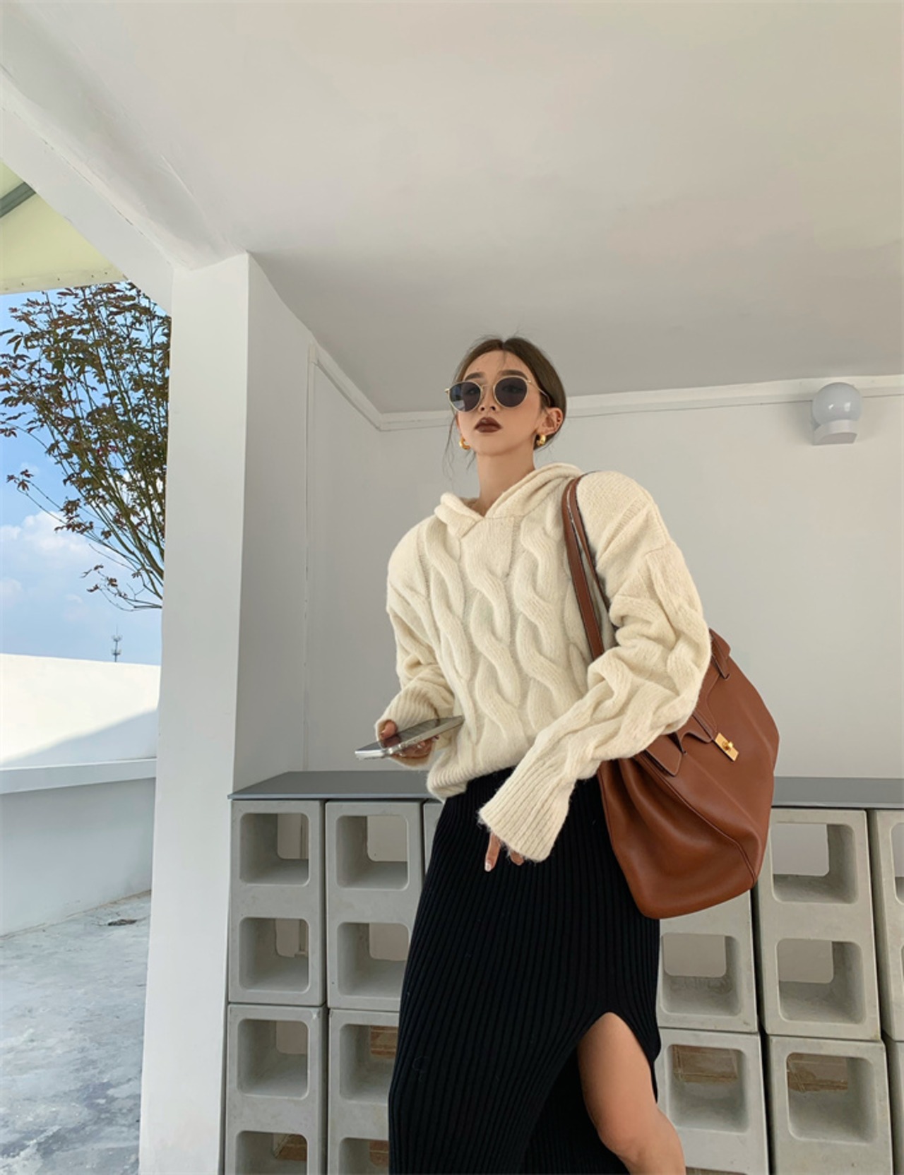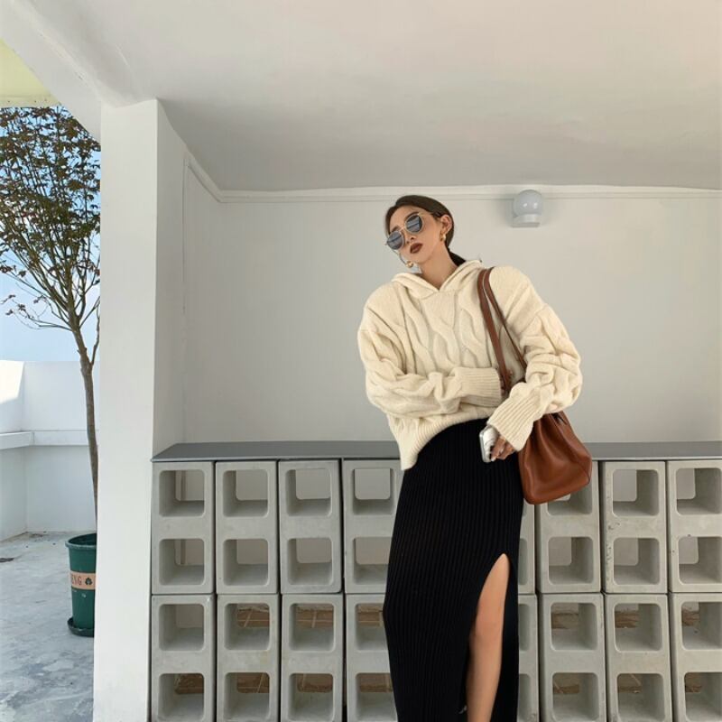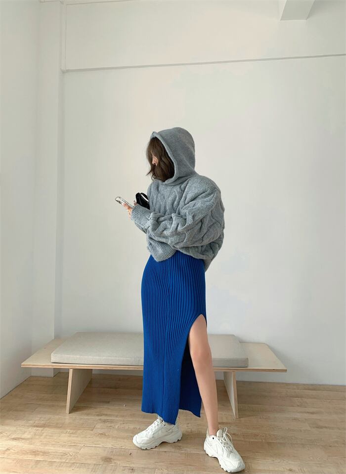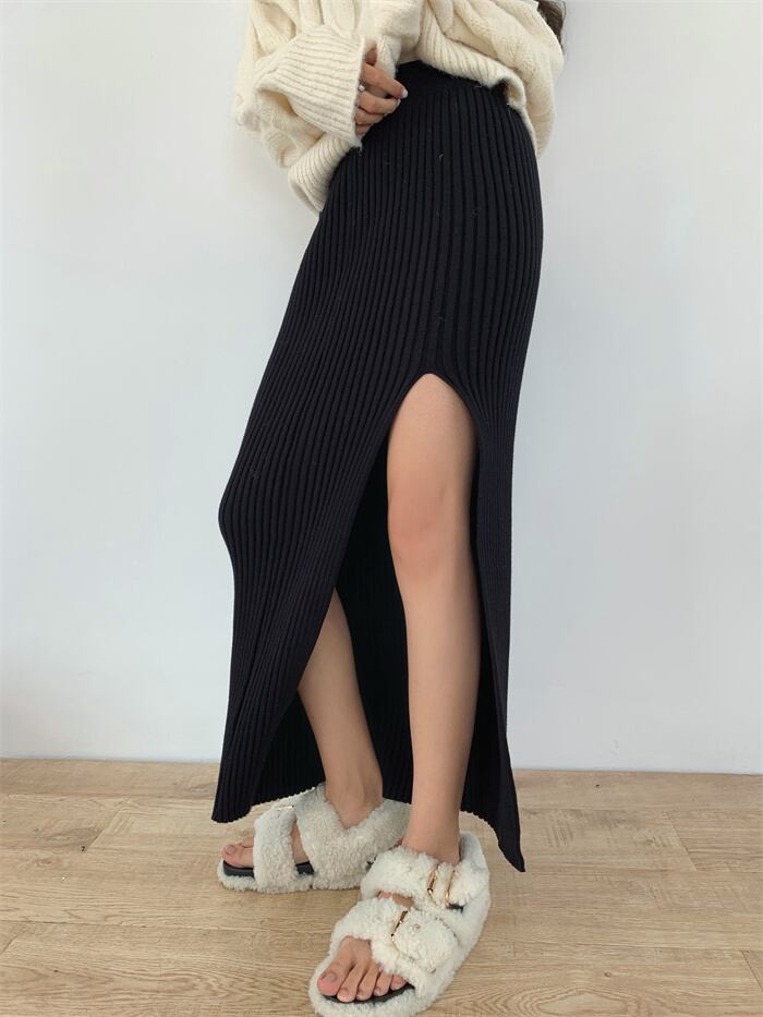 スプリットニットスカート ニットスカート ハイウエスト. スリット セクシー スカート 秋冬 レトロ 2カラー aa3609