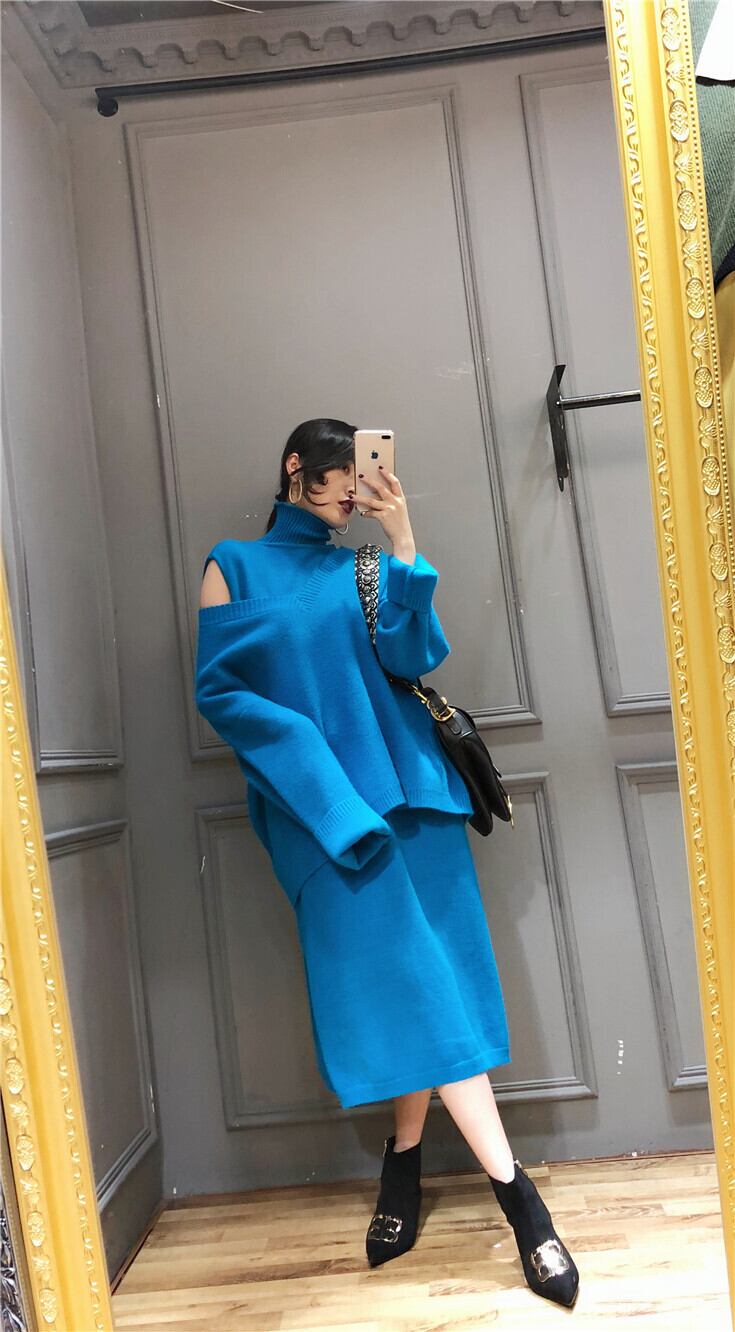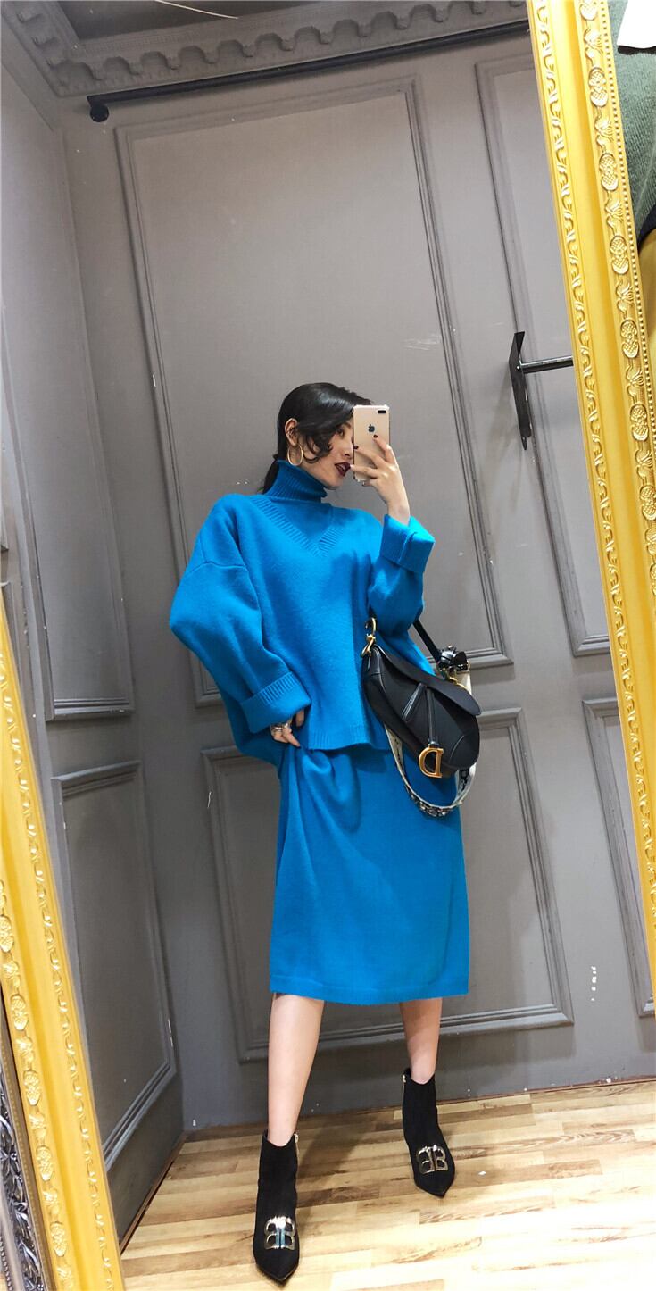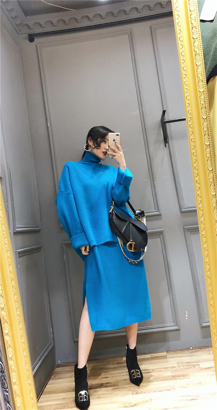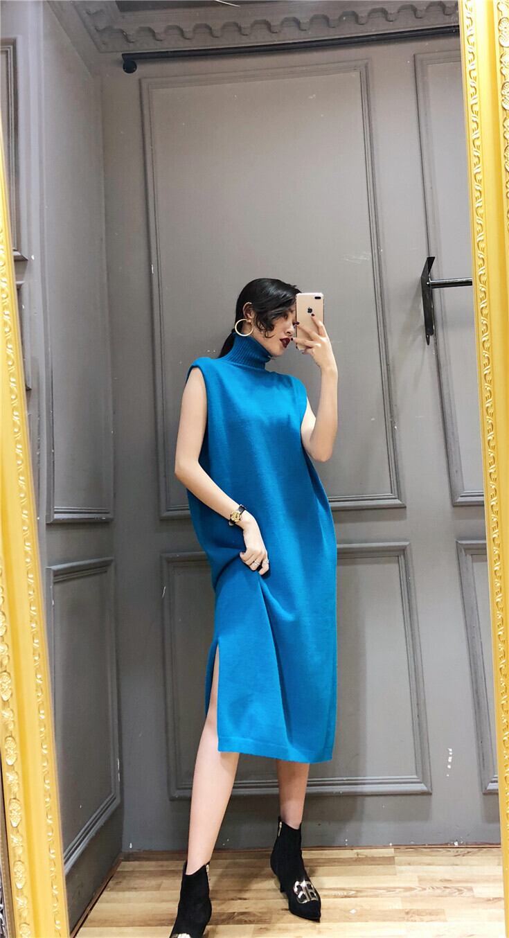 日本未発売【セットアップ】ハイネック ノースリーブニットワンピース+Vネックセーター. ニットアップ ツーピース. ニット セーター ニットワンピ a3857
