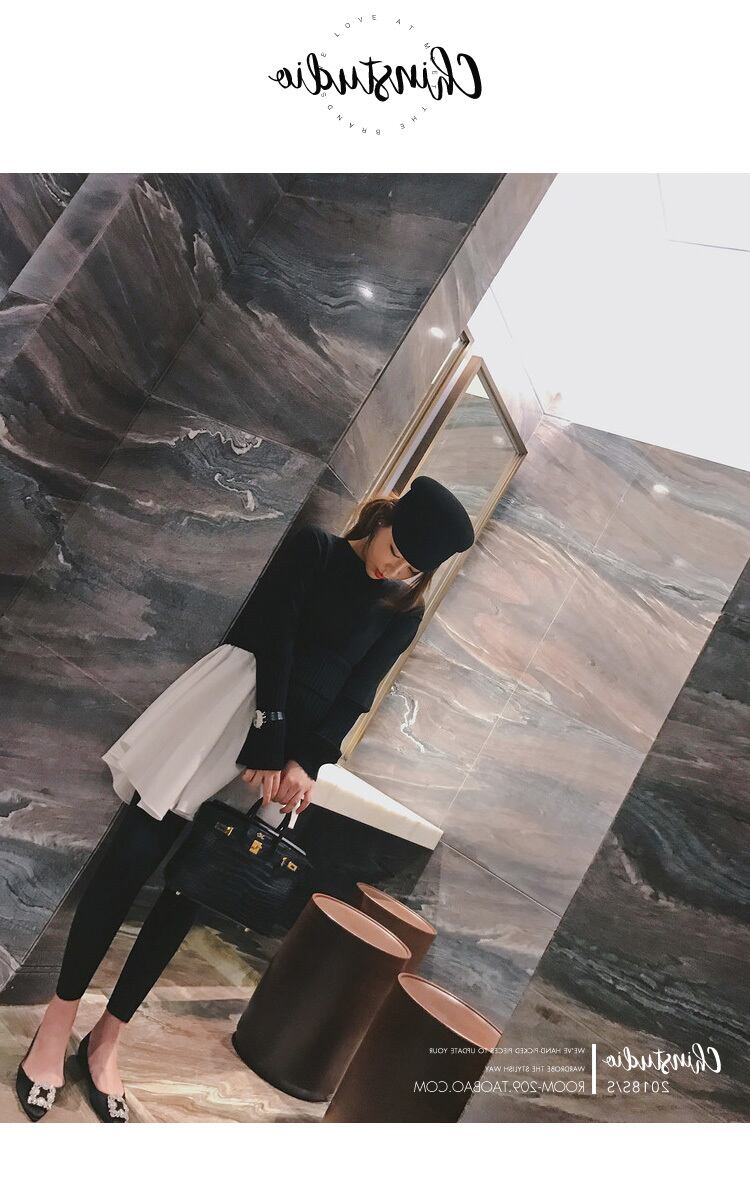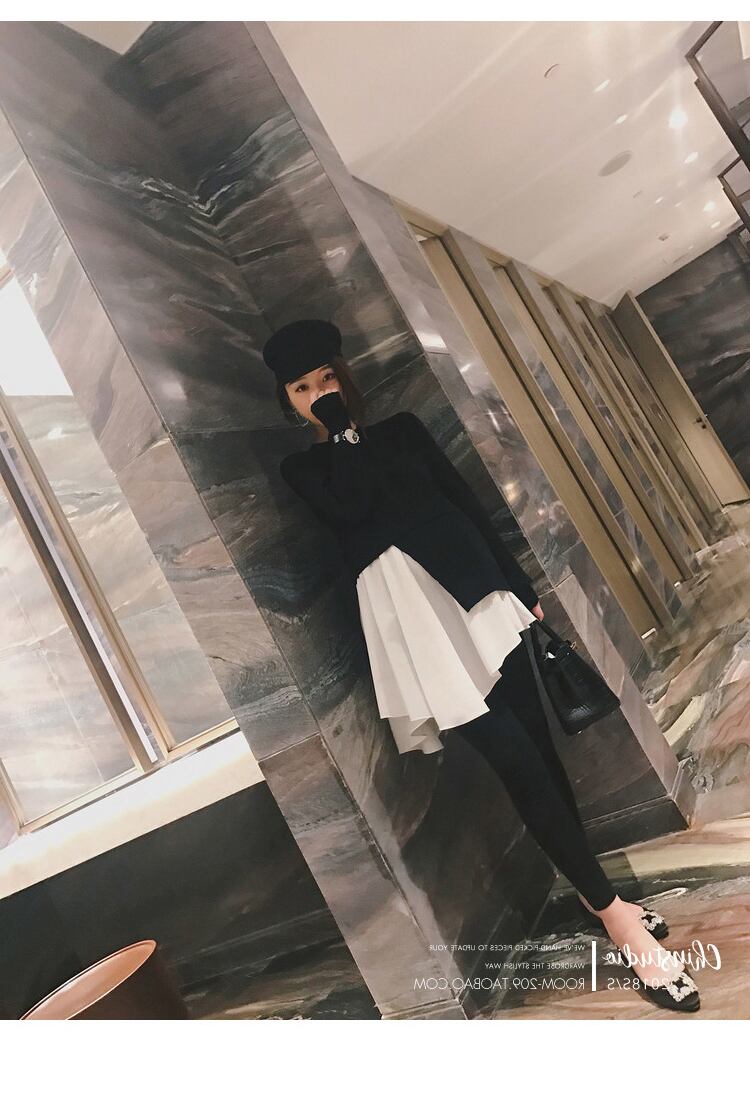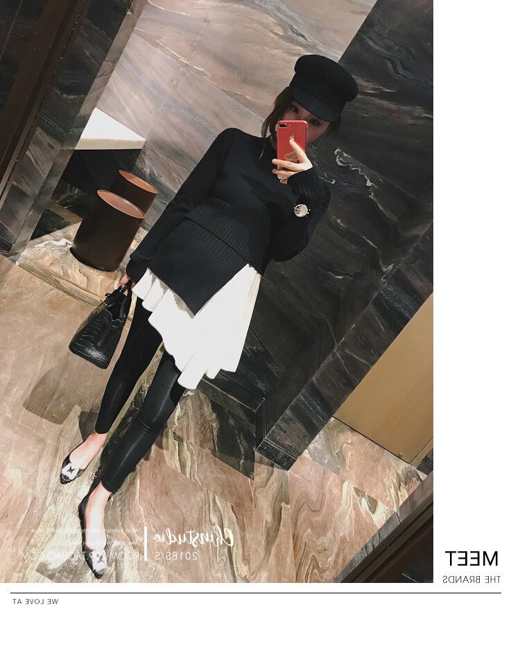 ドッキングアシンメトリー 切り替えニット レイヤード 重ね着風 重ね着 ドッキングニット フレア 裾 レディース トップス ニット クルーネック. a3758