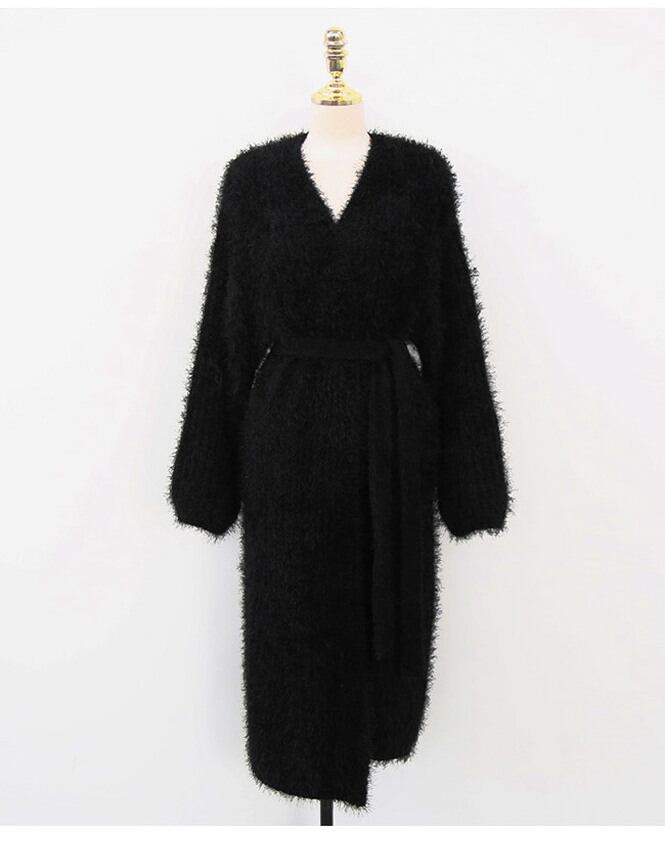 カーディガンジャケットセーター ウエストタイ カーディガン ジャケット シャギーファー 長袖 かわいい セーター. ニット 韓国 4カラー a3624